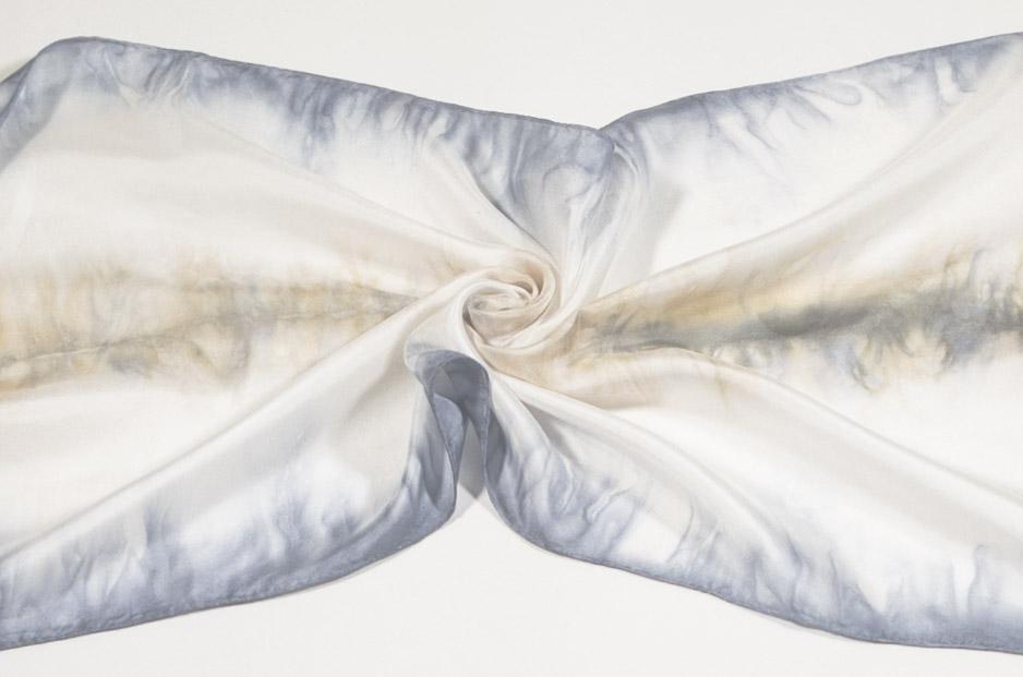 The water is marbled uniquely for each scarf. Therefore, each scarf is unique, peerless and one of its kind.